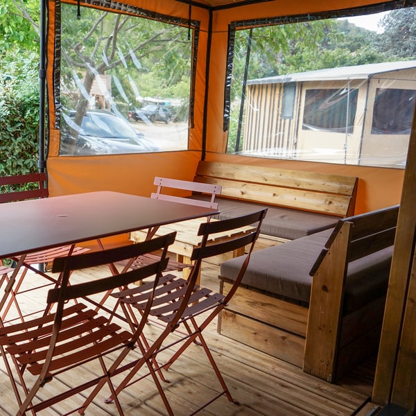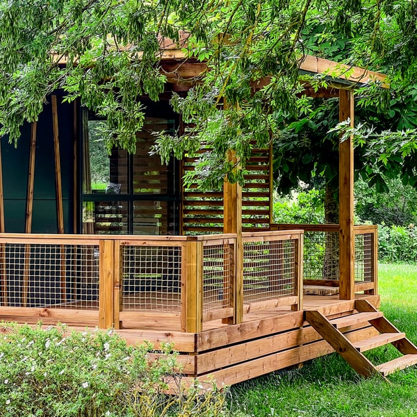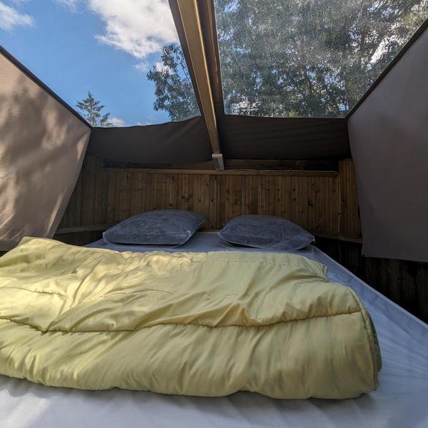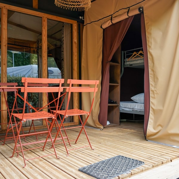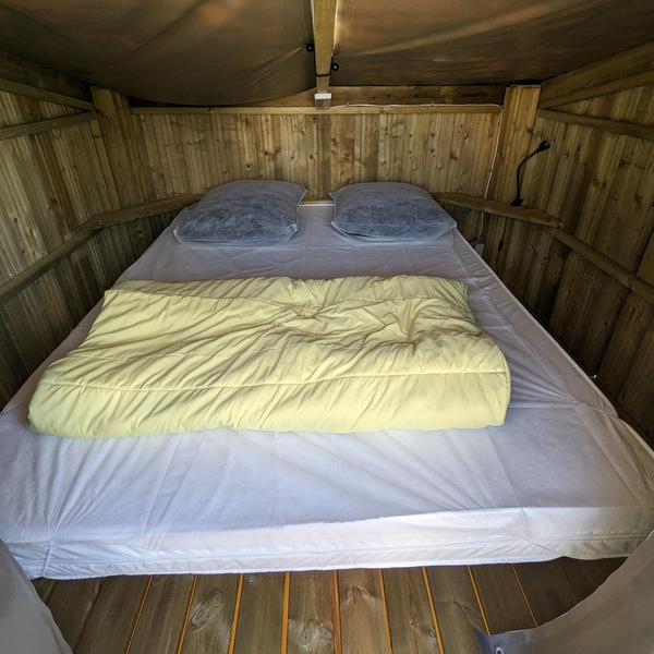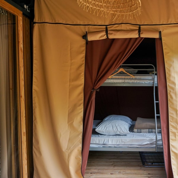 If you are looking for the comfort of ready-to-rent accommodation without compromising on the authenticity of camping, our Lonna tent is for you: a real cocoon made of canvas and wood built on stilts, ideal for stopovers on a cycling holiday. Fully equipped, all you have to do is settle in and relax after a day of exploring or cycling!