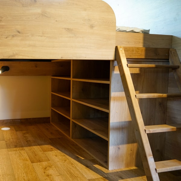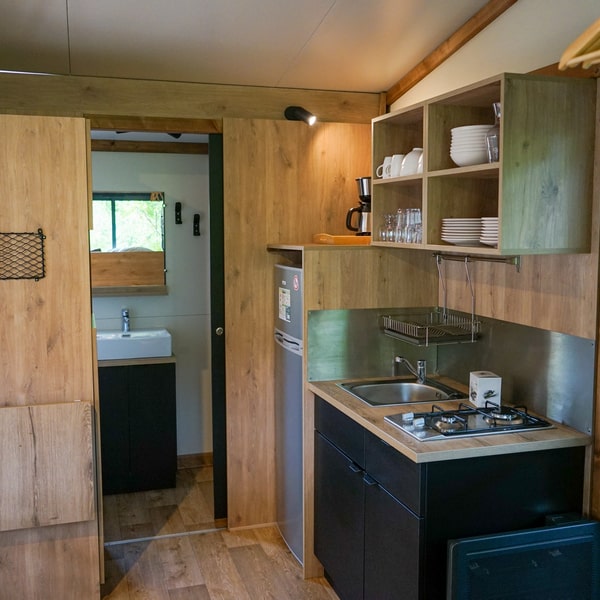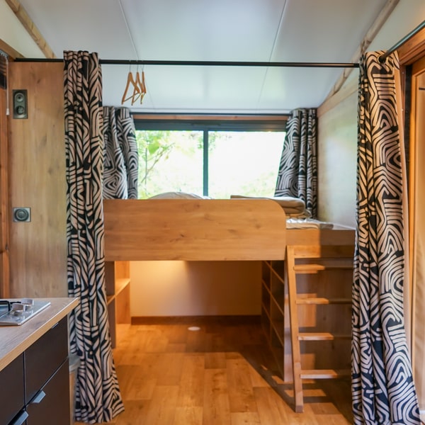 Are you looking for original, trendy accommodation close to nature? Welcome to our Galli tiny-house. Measuring 27m², it has a wood interior that’s stylish, warm and super-optimised for up to 5 people. Imagine yourself comfortably installed in a real cocoon, lulled by birdsong. With a touch of adventure thrown in for good measure!