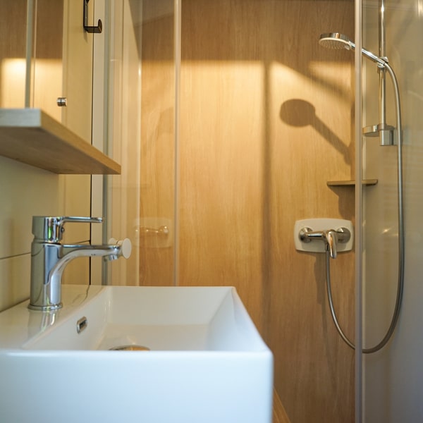 No private bathroom—guests use the campsite’s shared sanitary facilities.
